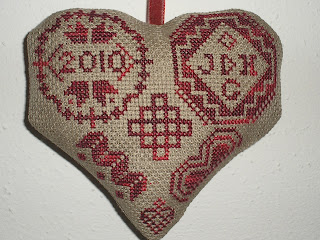 Last Thursday Heidi, Bep (no blog) and I had our two month SAL. we are making a cross-stitch pillow Christmas tree. And its so much fun. Difficult, but fun! Bep likes bright colors, so she is using DMC 304. Heidi and I picked DMC 815, not knowing that from each other.